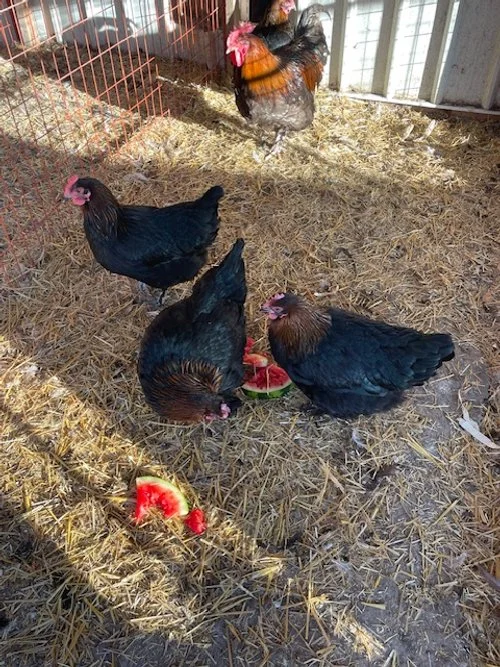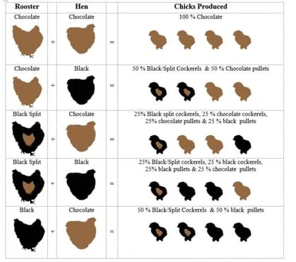 Due to repeated requests, I have replaced my pure BCM pen with a pen of BCM girls under a Chocolate Copper Rooster. The hens are quality BCM bred to SOP and also selected for egg colour. Lovely temperaments all around. How the sex link works with chocolate is this. A chocolate rooster over BCM hens produces all chocolate females and black males so they are seXable immediately at hatch. Great for those who want guaranteed females or are unable to deal with males. In In early season only chicks will be availabe. Later I will also be offering eggs.